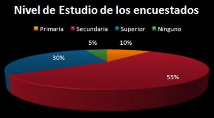 El 55% de los encuestados esta en un nivel secundario de estudio.